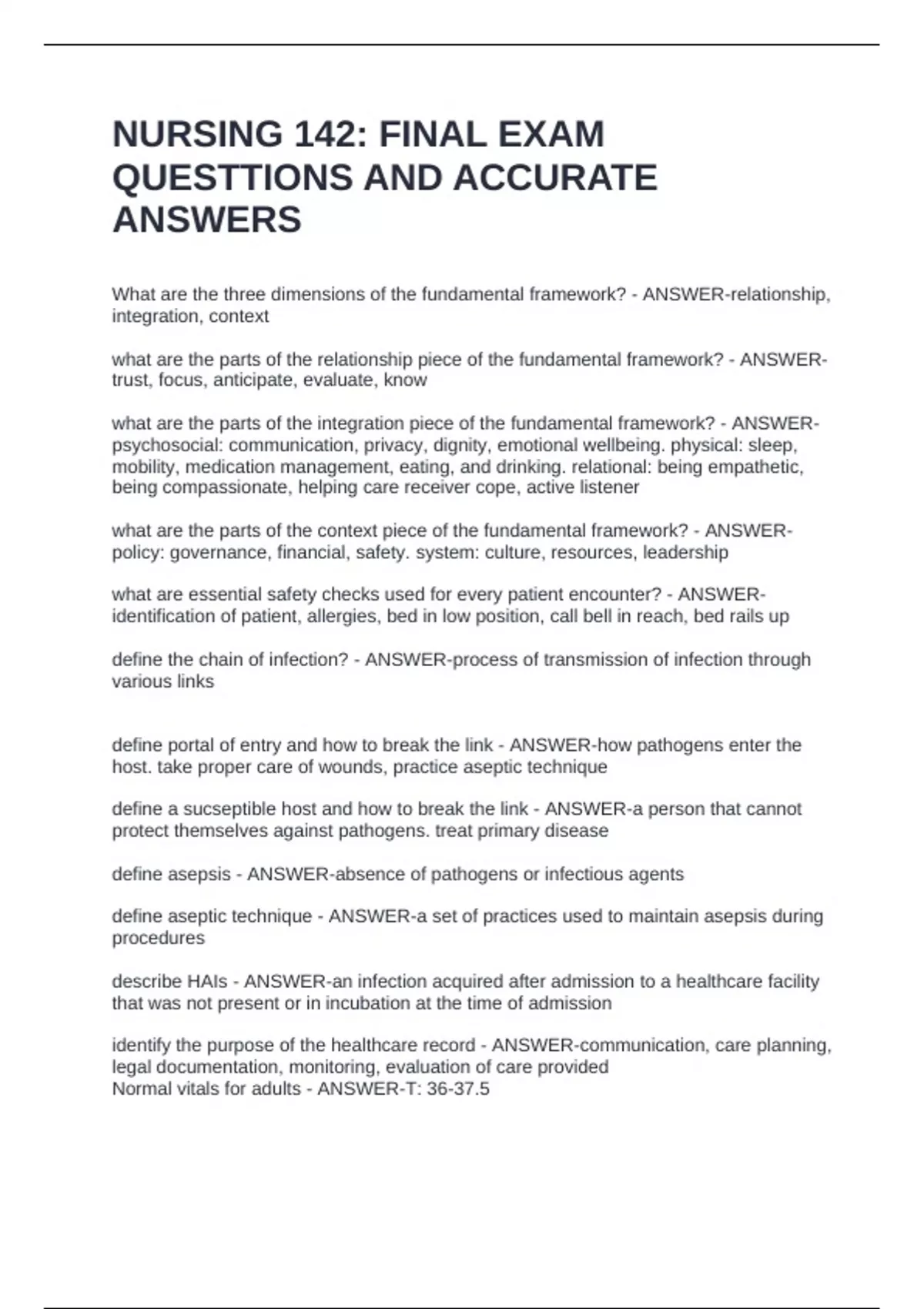 NURSING 142: FINAL EXAM QUESTIONS AND ACCURATE ANSWERS