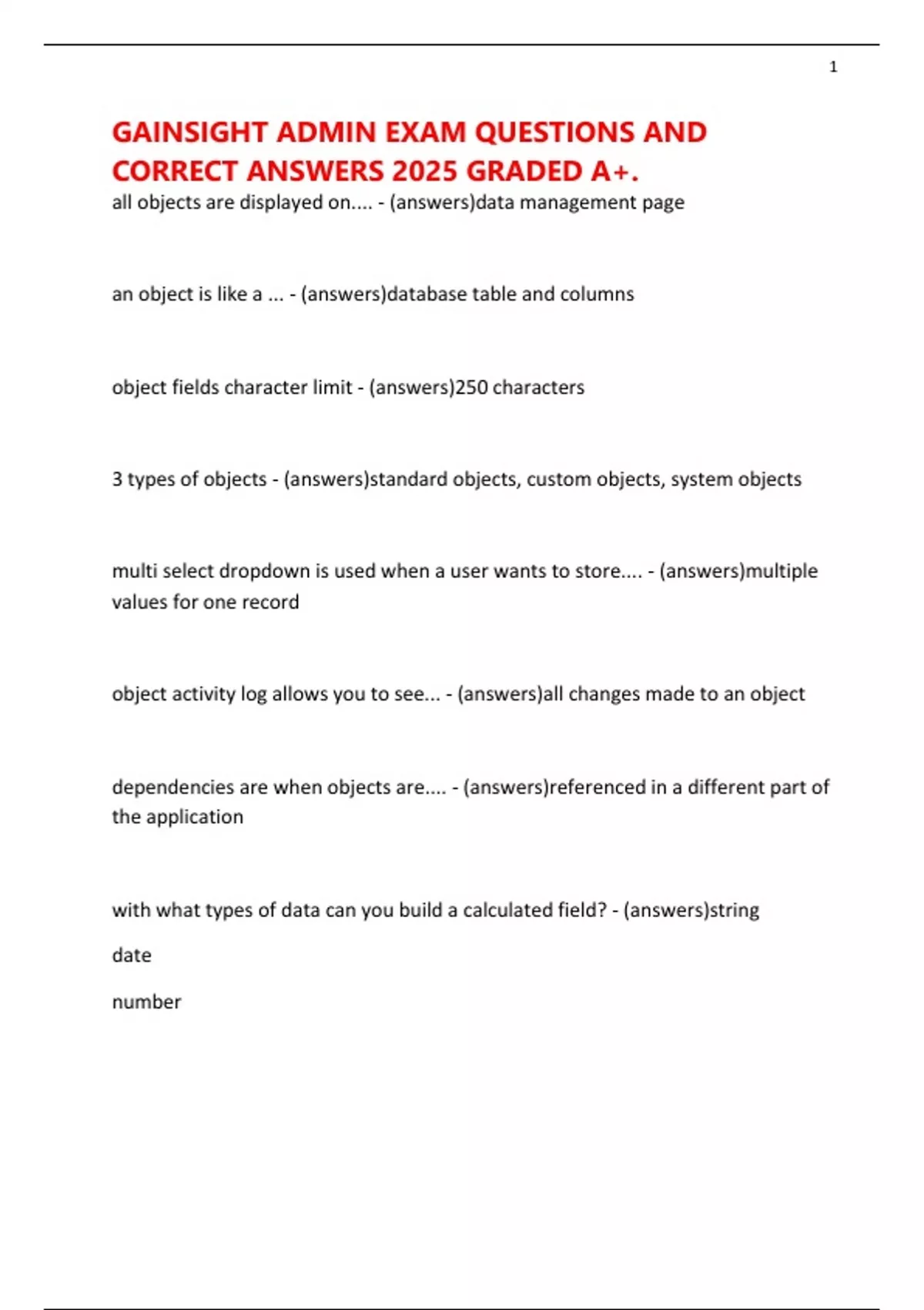 GAINSIGHT ADMIN EXAM QUESTIONS AND