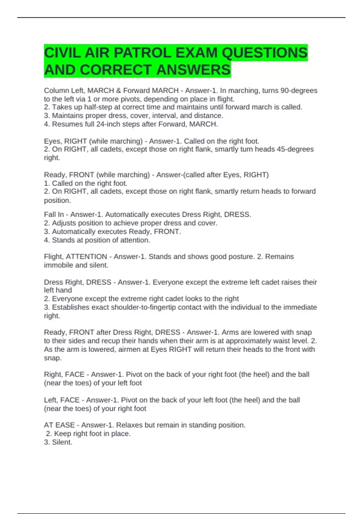 Fall In - Answer-1. Automatically executes Dress Right, DRESS.