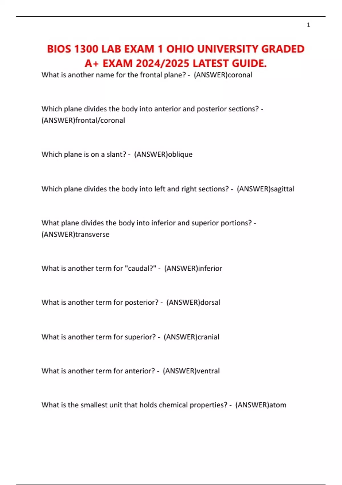 BIOS 1300 LAB EXAM 1 OHIO UNIVERSITY GRADED