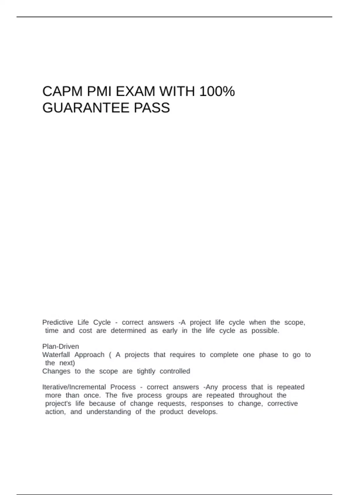 CAPM PMI EXAM WITH 100%
