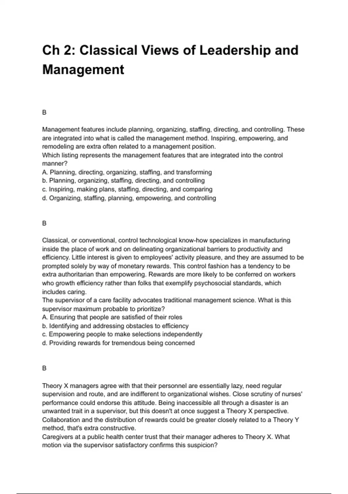 b. Planning, organizing, staffing, directing, and controlling