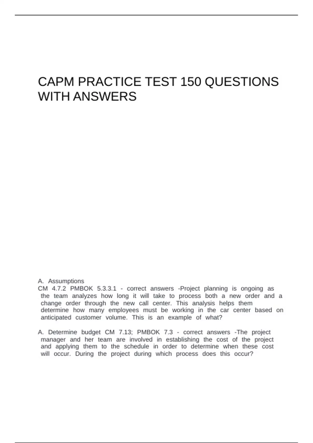 CAPM PRACTICE TEST 150 QUESTIONS