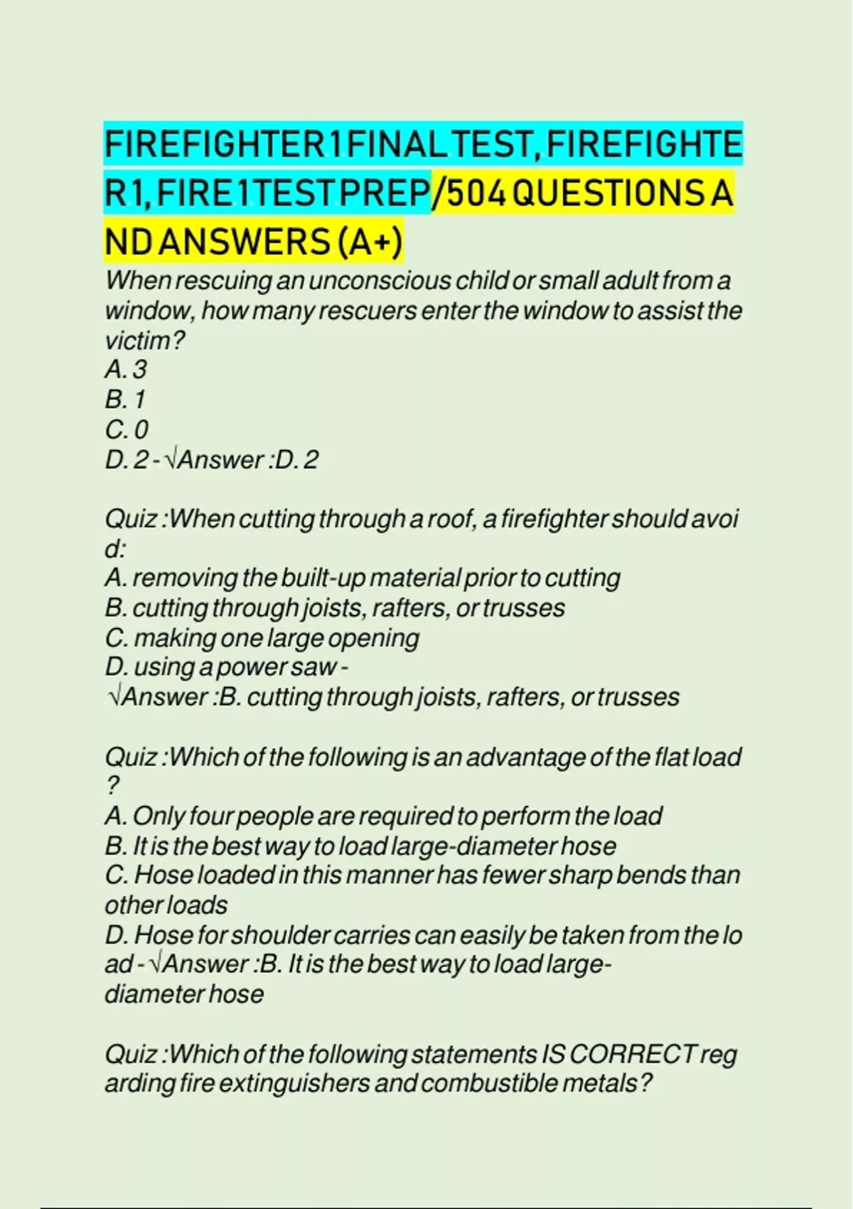 FIREFIGHTER 1 FINAL TEST, FIREFIGHTE k k k k