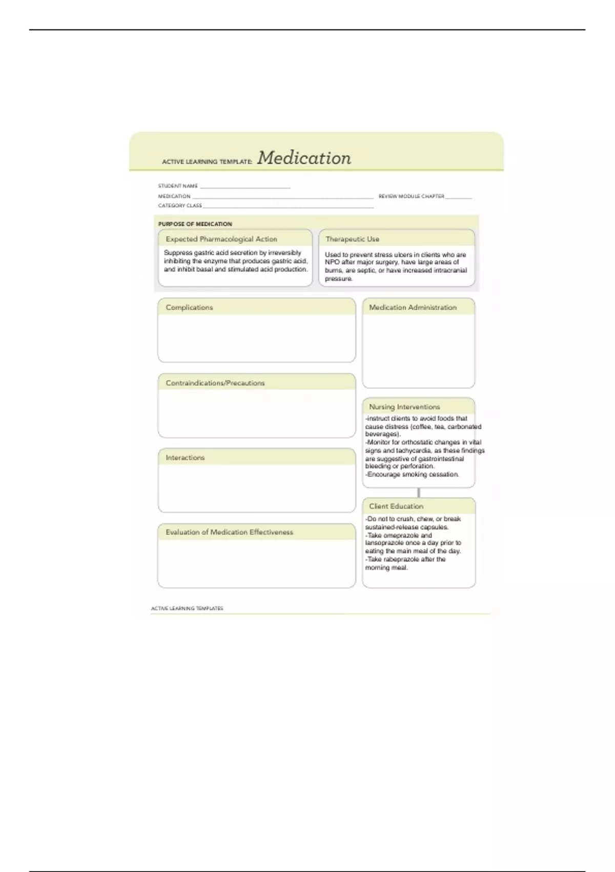 ACTIVE LEARNING TEMPLATE: Medication