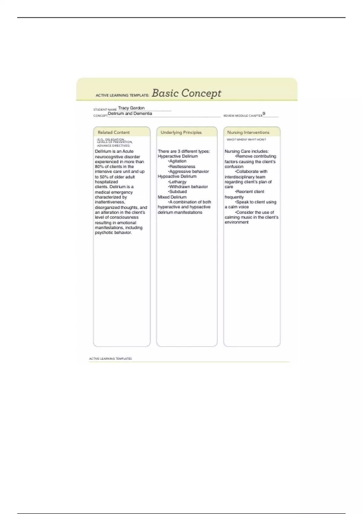 DelIrium is an Acute There are 3 different types: Nursing Care includes: