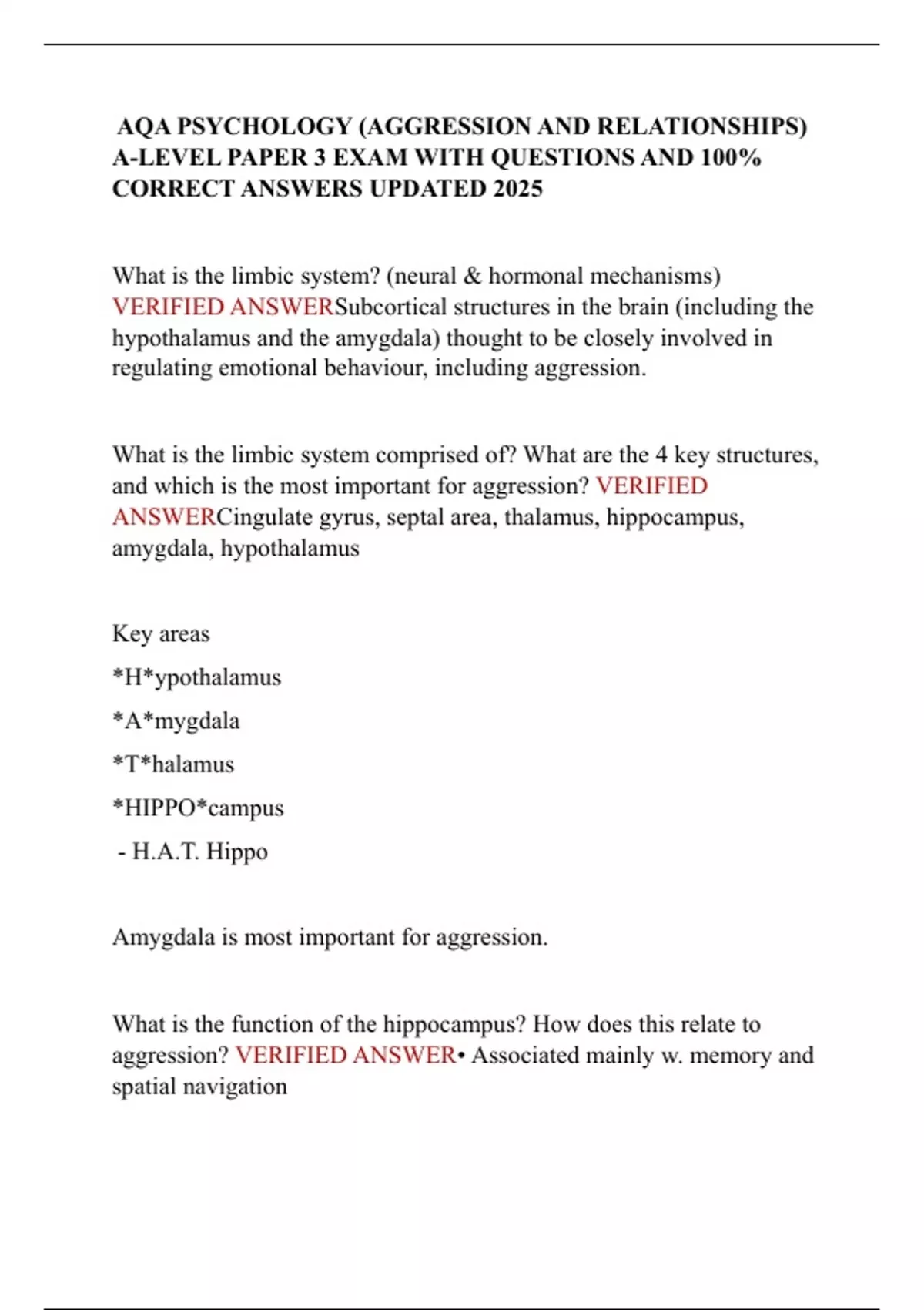 AQA PSYCHOLOGY (AGGRESSION AND RELATIONSHIPS) A-LEVEL PAPER 3 EXAM WITH QUESTIONS AND 100% CORRECT ANSWERS UPDATED 2025