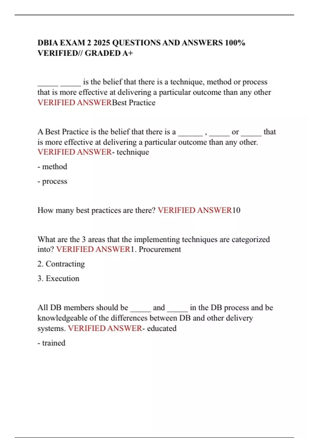 DBIA EXAM 2 2025 QUESTIONS AND ANSWERS 100%