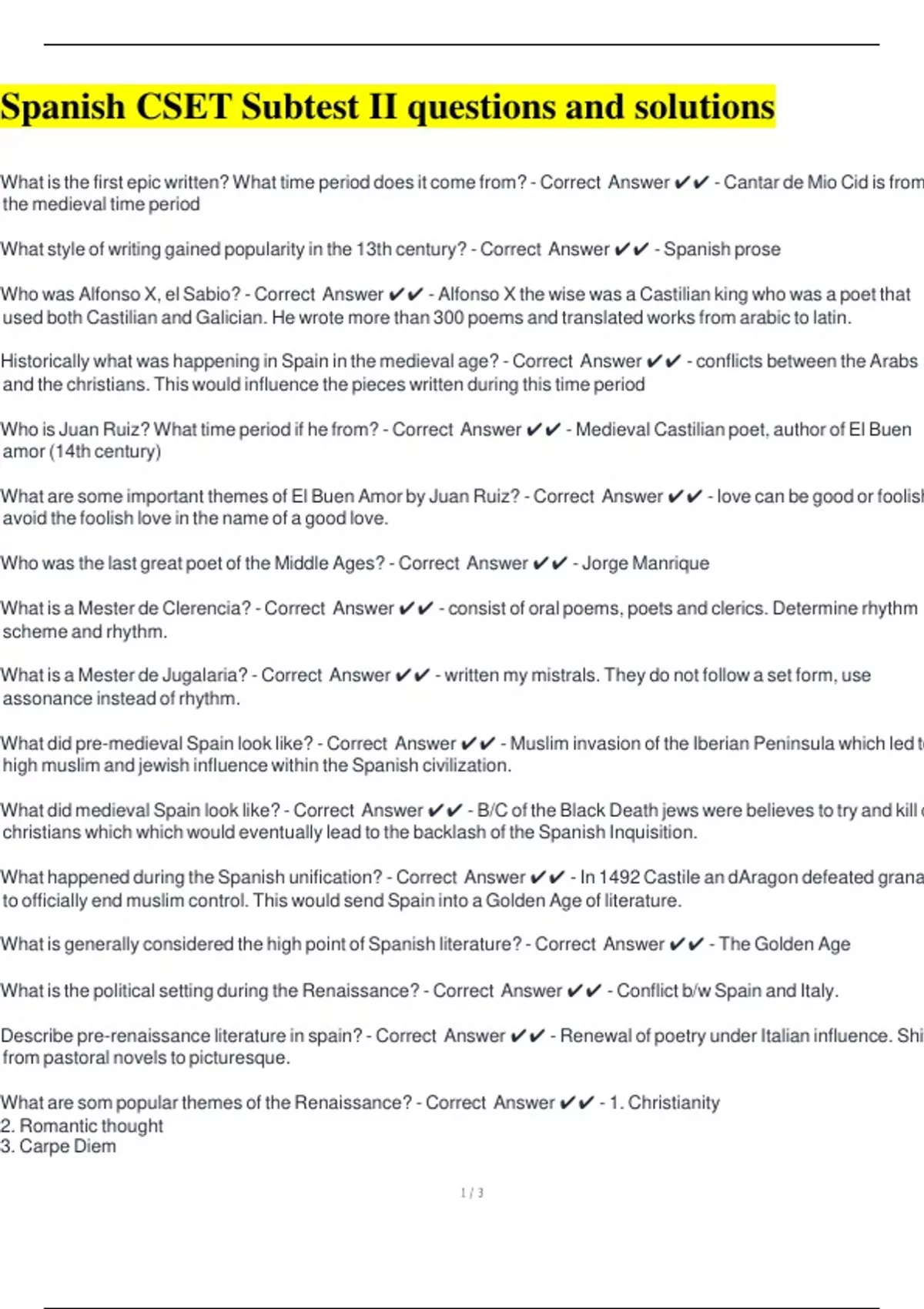Who was Alfonso X, el Sabio? - Correct Answer ✔✔ - Alfonso X the wise was a Castilian king who was a poet that
