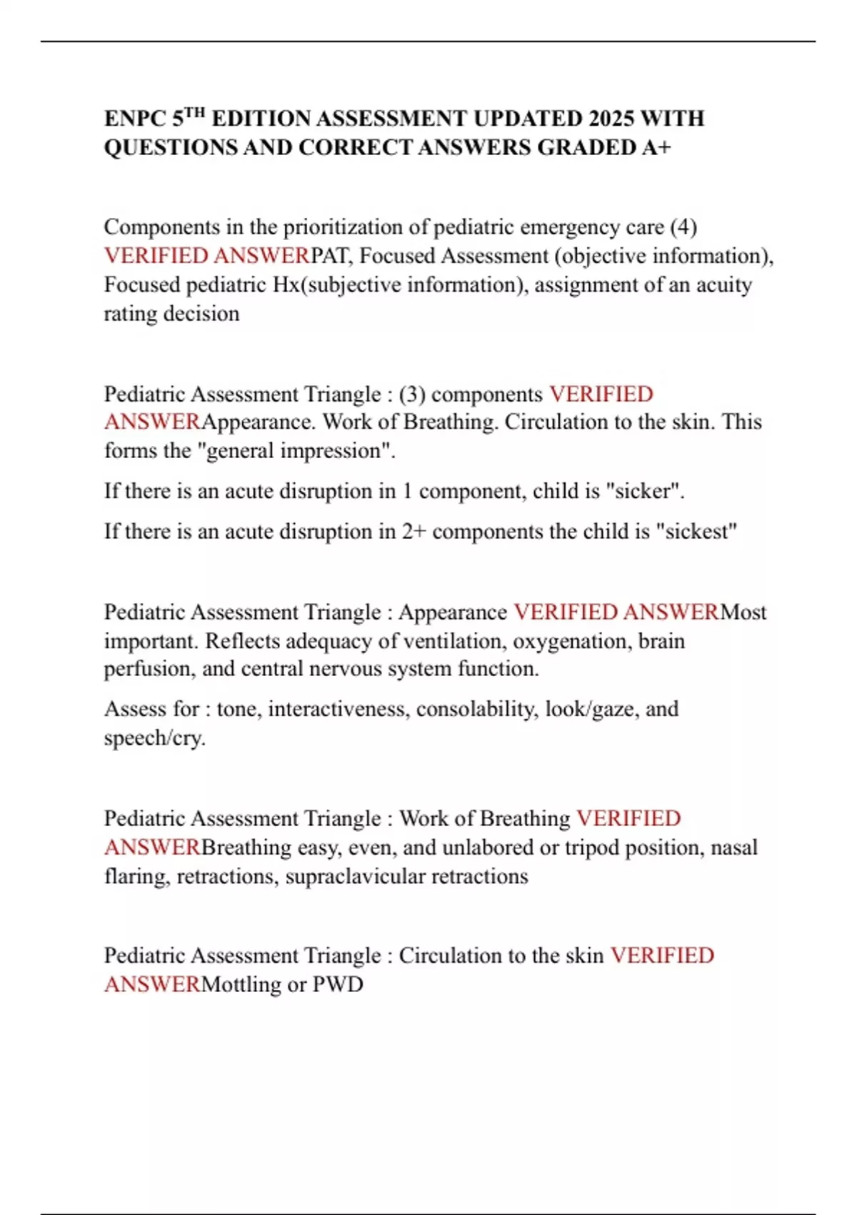 Pediatric Assessment Triangle : (3) components VERIFIED