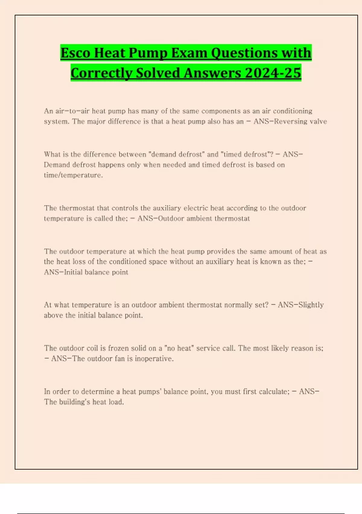 esco heat pump exam questions with correctly solve