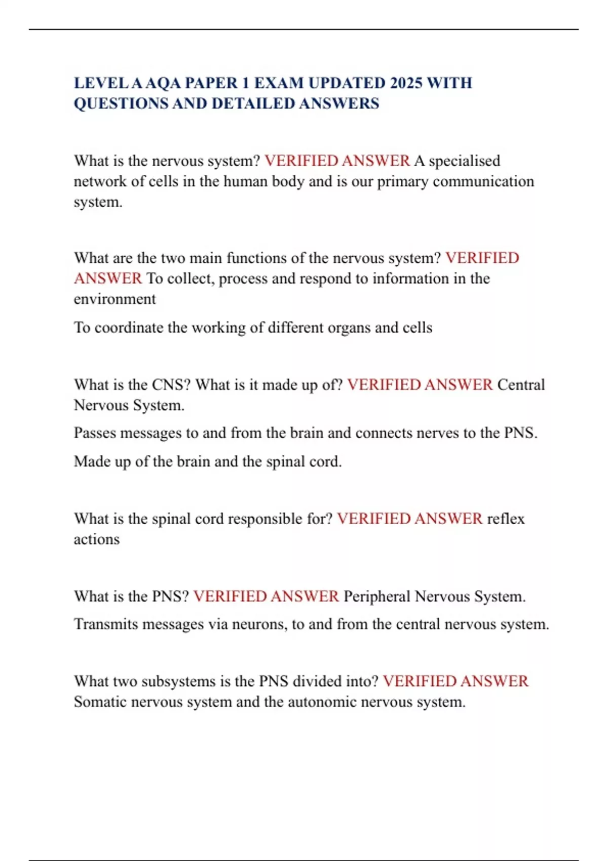 LEVEL A AQA PAPER 1 EXAM UPDATED 2025 WITH