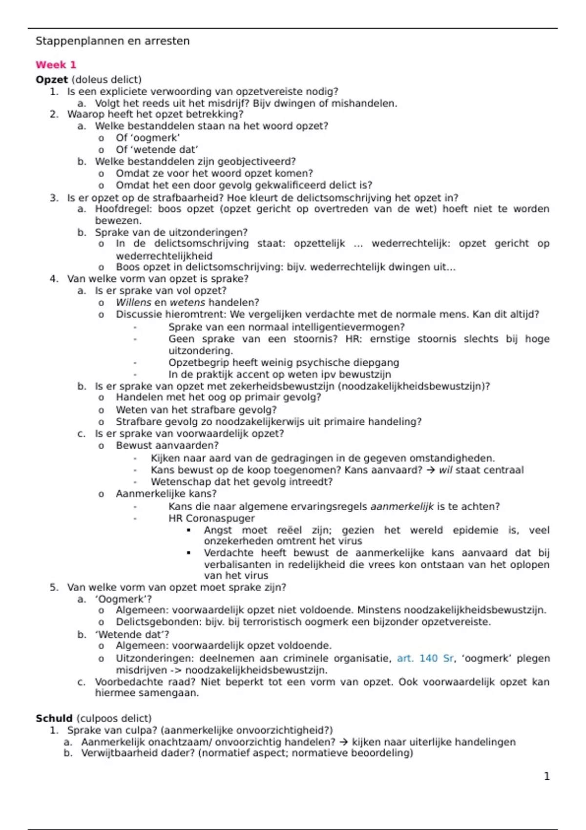 Dit document bevat alle stappenplannen die je nodig hebt om het tentamen van materieel strafrecht te maken. De stappen zijn gericht op het oplossen van casussen en bevatten informatie uit de literatuur, hoorcolleges en oefenopdrachten. De stappenplannen zijn volledig en duidelijk. Door deze stappenplannen te leren en te kunnen toepassen heb ik een 8 gehaald op het tentamen.