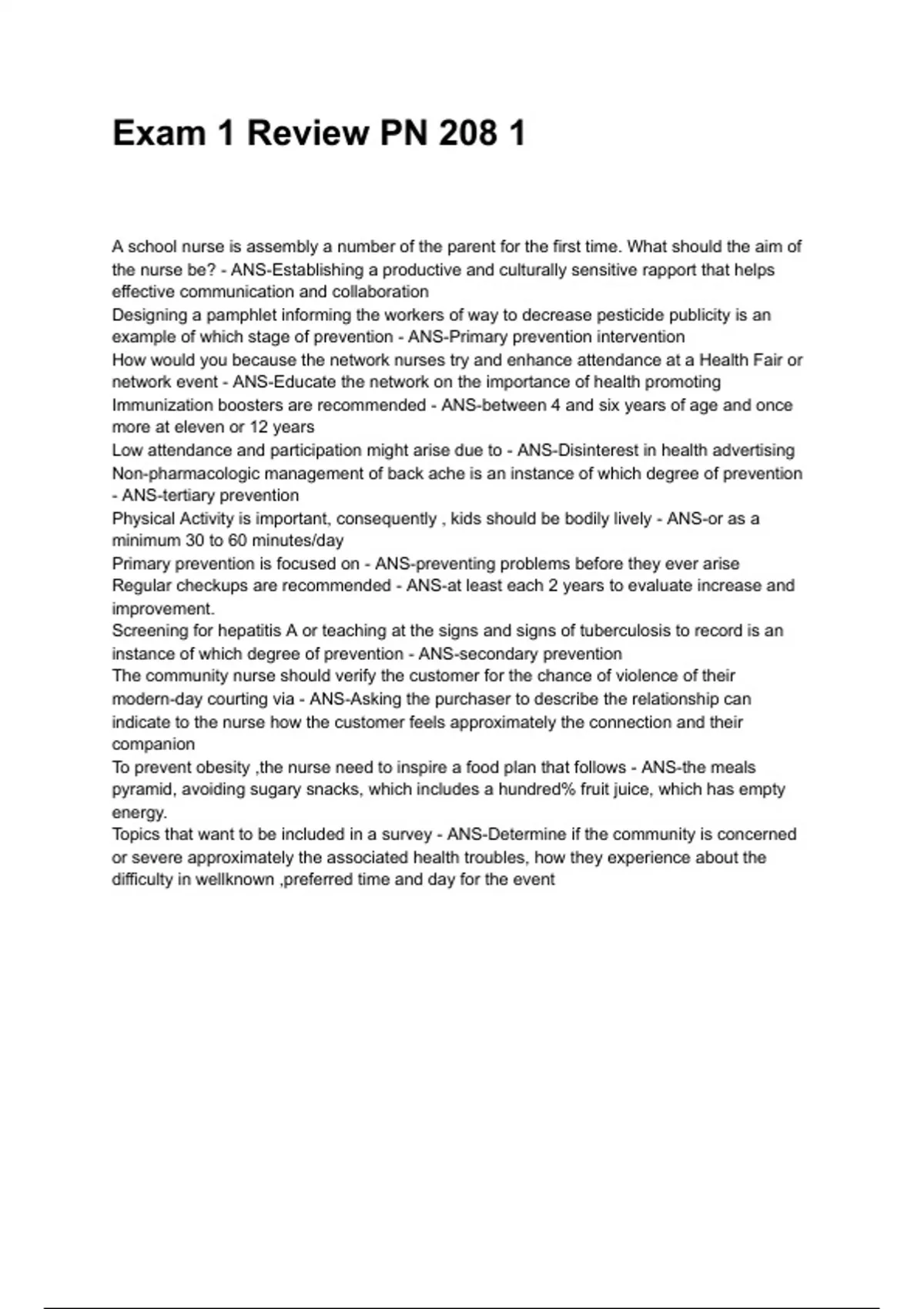 example of which stage of prevention - ANS-Primary prevention intervention