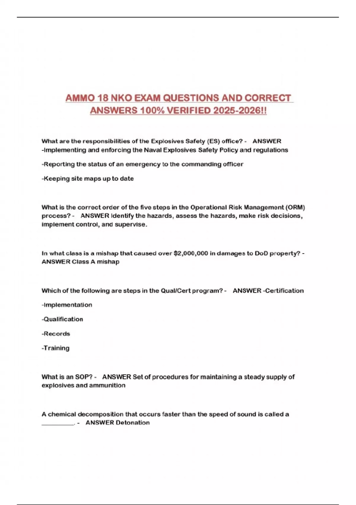 AMMO 18 NKO EXAM QUESTIONS AND CORRECT ANSWERS 100% VERIFIED !!