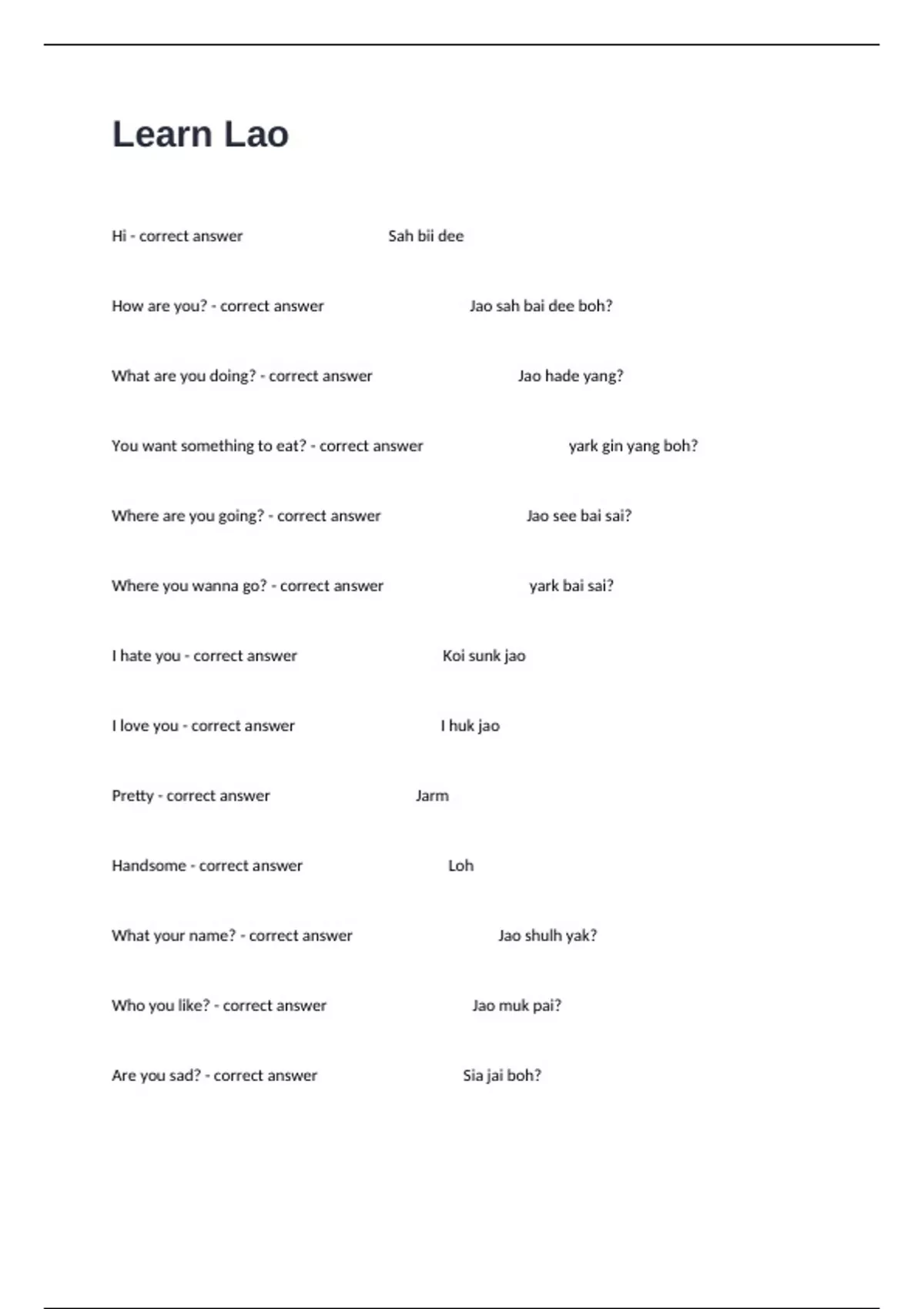 How are you? - correct answer Jao sah bai dee boh?