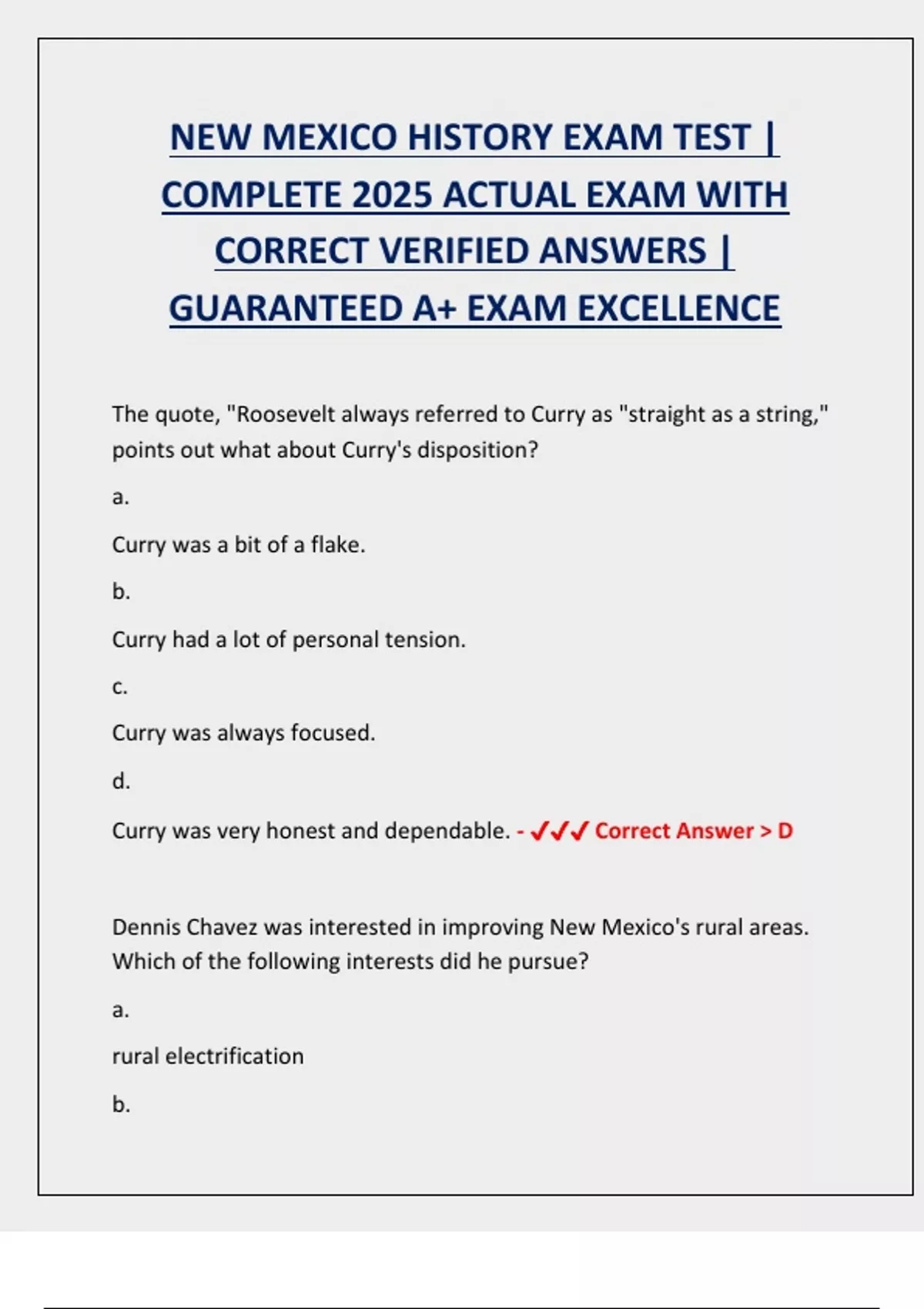Curry was very honest and dependable. - ✔✔✔ Correct Answer > D