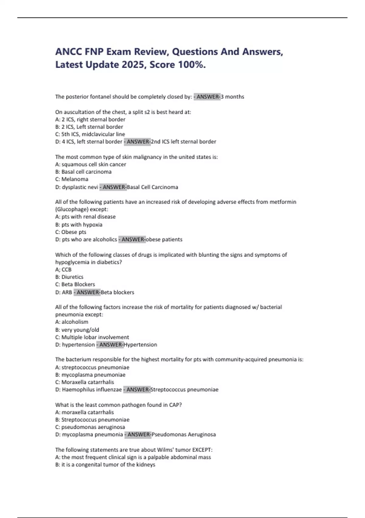 ANCC FNPExam Review, Questions And Answers, Latest Update 2025, Score 100%