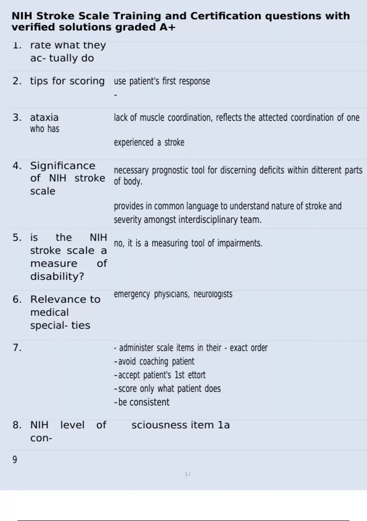 NIH Stroke Scale Training and Certification questions with verified solutions graded A+