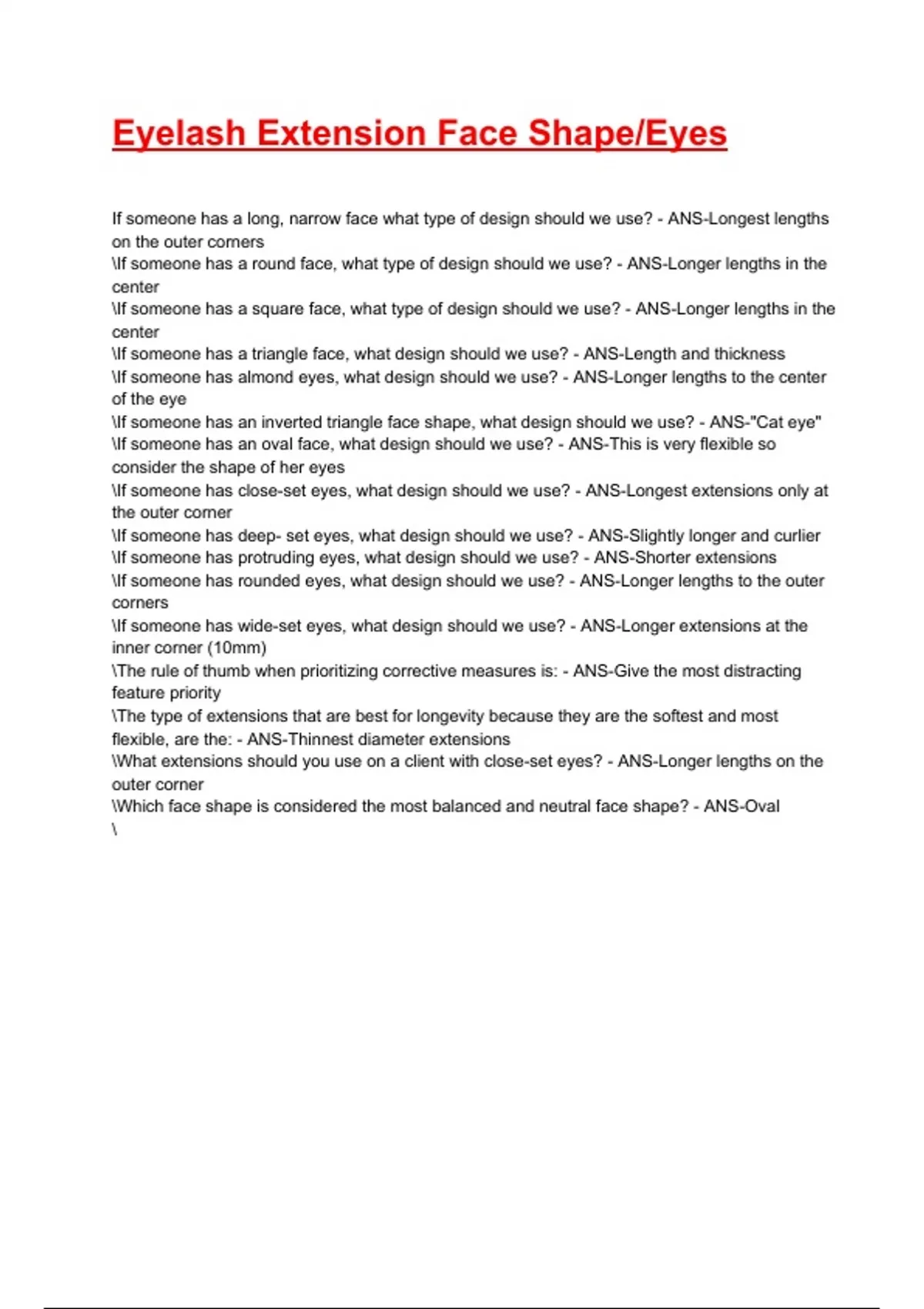\What extensions should you use on a client with close-set eyes? - ANS-Longer lengths on the