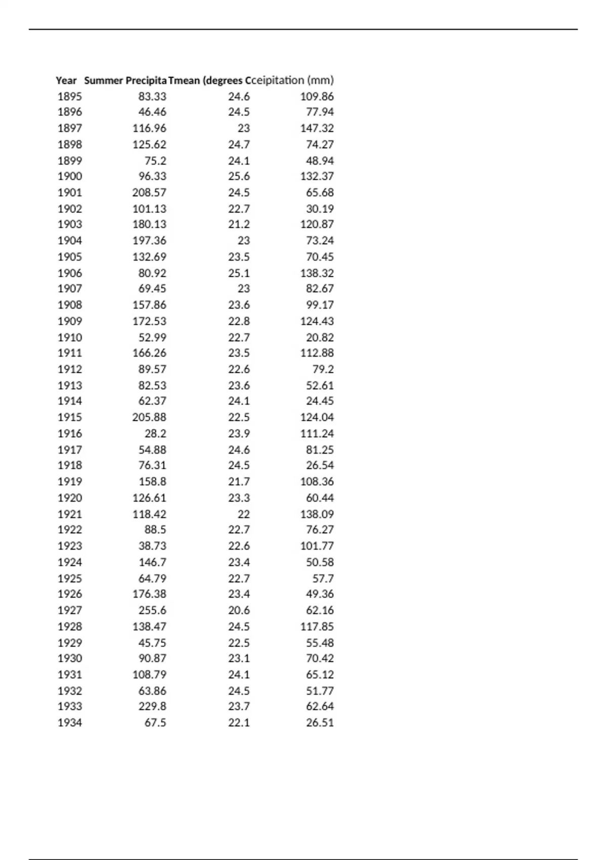 Year Summer Precipita Tmean (degrees C ceipitation (mm)