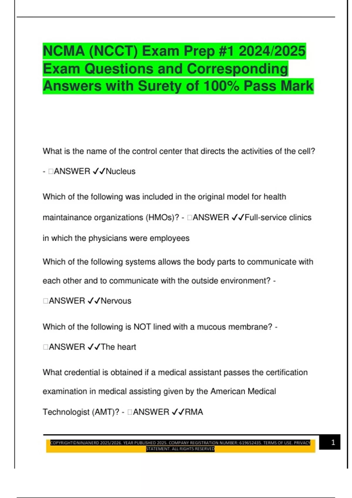 NCMA (NCCT) Exam Prep #1 2024/2025
