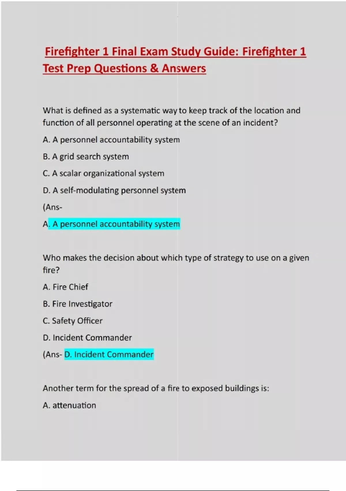 Firefighter 1 /Firefighter 1 Final Exam: Study Guide: Firefighter 1 Test Prep Questions & Answers