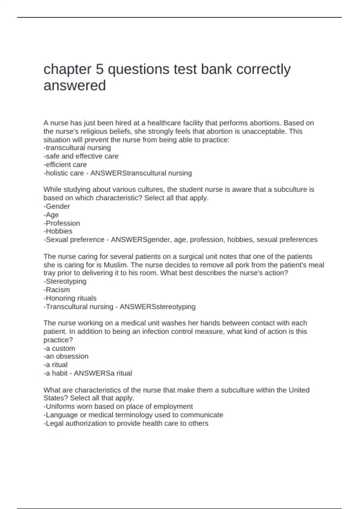 -Transcultural nursing - ANSWERSstereotyping