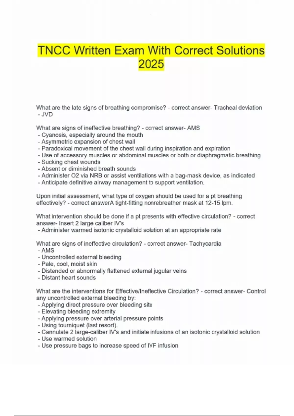 A Package deal for TNCC 9th Edition TNP Exam Questions With Latest Updated Solutions 2025