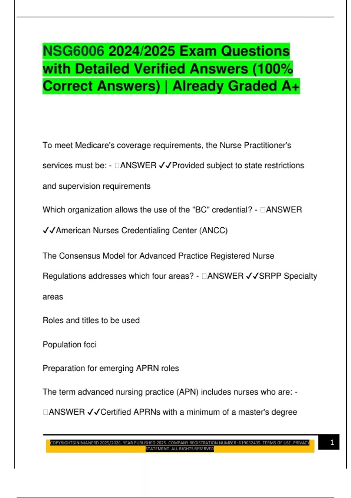 NSG/2025 Exam Questions with Detailed Verified Answers (100% Correct Answers) | Already Graded A+