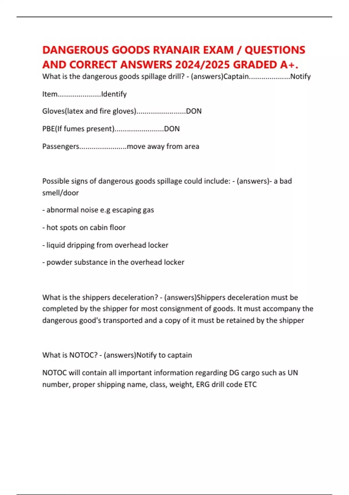 DANGEROUS GOODS RYANAIR EXAM / QUESTIONS AND CORRECT ANSWERS 2024/2025 GRADED A+.
