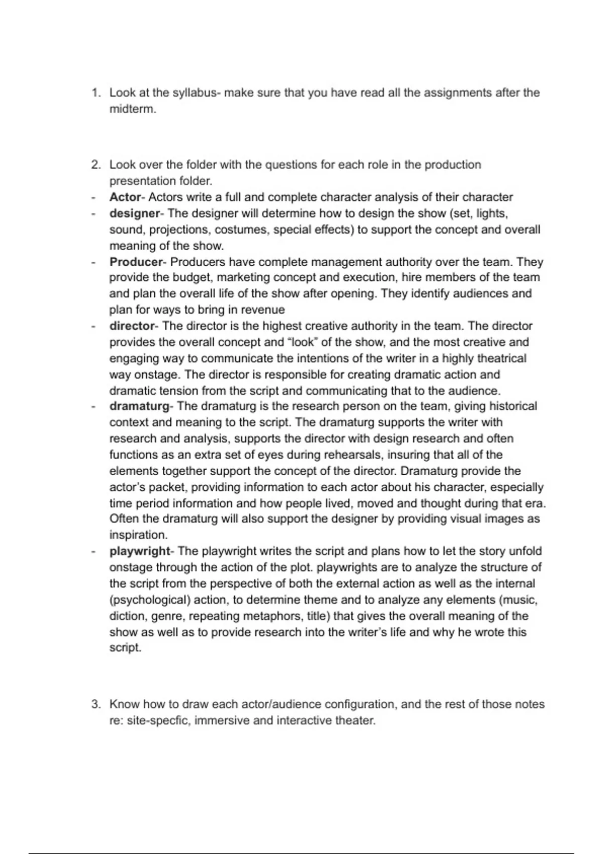 -​ dramaturg- The dramaturg is the research person on the team, giving historical