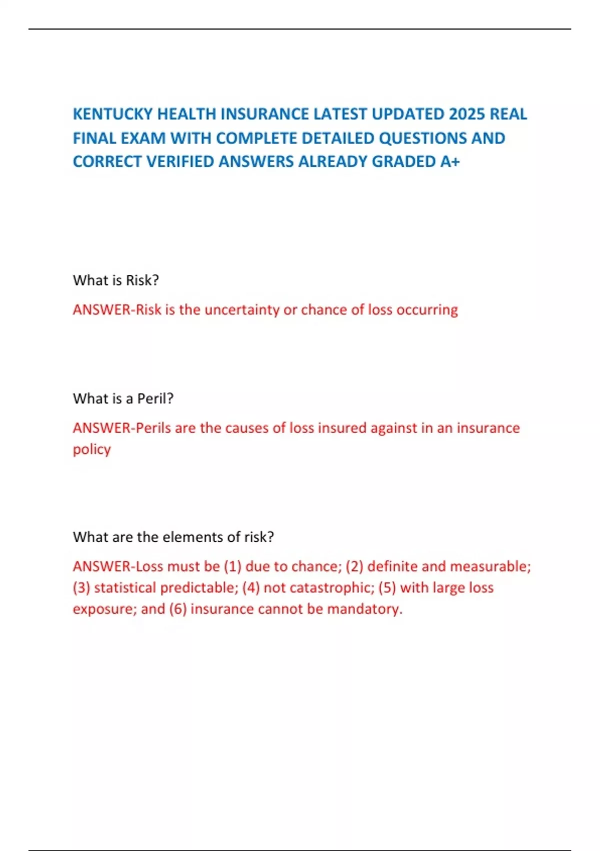 (3) statistical predictable; (4) not catastrophic; (5) with large loss