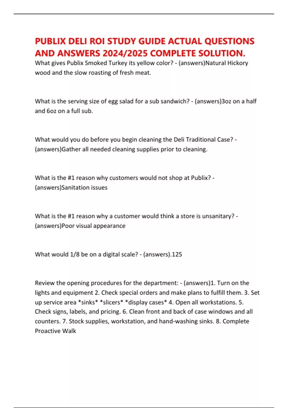 Review the opening procedures for the department: - (answers)1. Turn on the