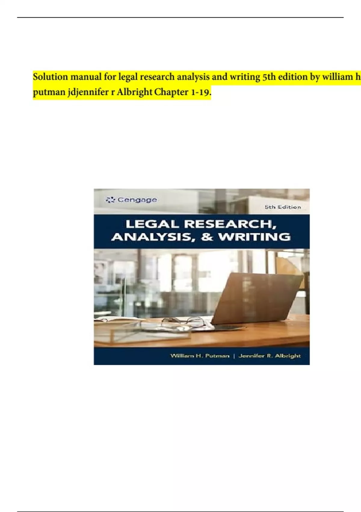 Solution Manual - Legal Research, Analysis, and Writing 5th Edition by Putman & Albright All 19 Chapters Covered, Verified Latest Edition