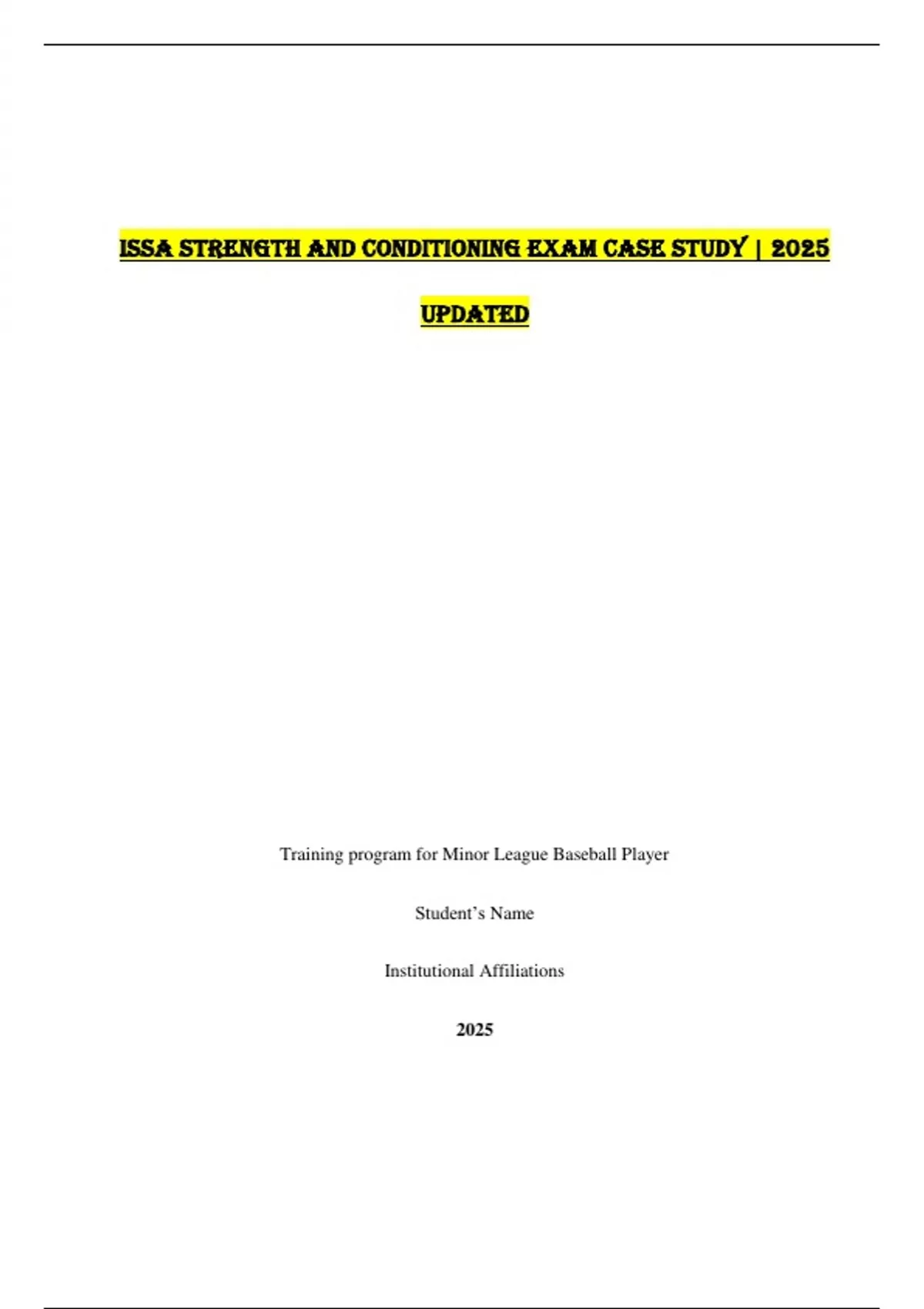 ISSA STRENGTH AND CONDITIONING EXAM CASE STUDY | 2025 UPDATED Training program for Minor League Baseball Player Student’s Name Institutional Affiliations 2025