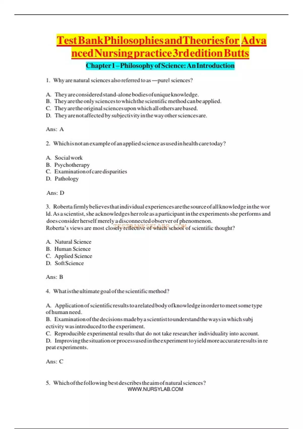 PhilosophiesjandjTheoriesjforjAdvancedjNursingjPracticej3rdjEditionjButtsjTestjBank