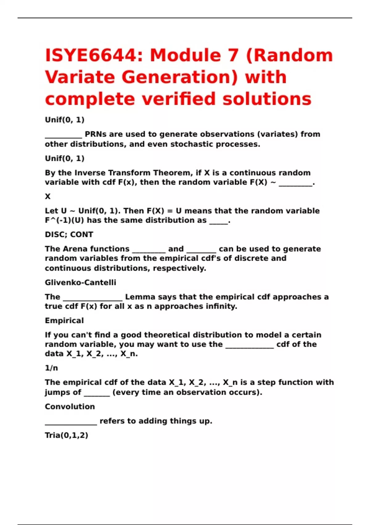 ISYE6644 Module 7 (Random Variate Generation) with complete verified solutions.