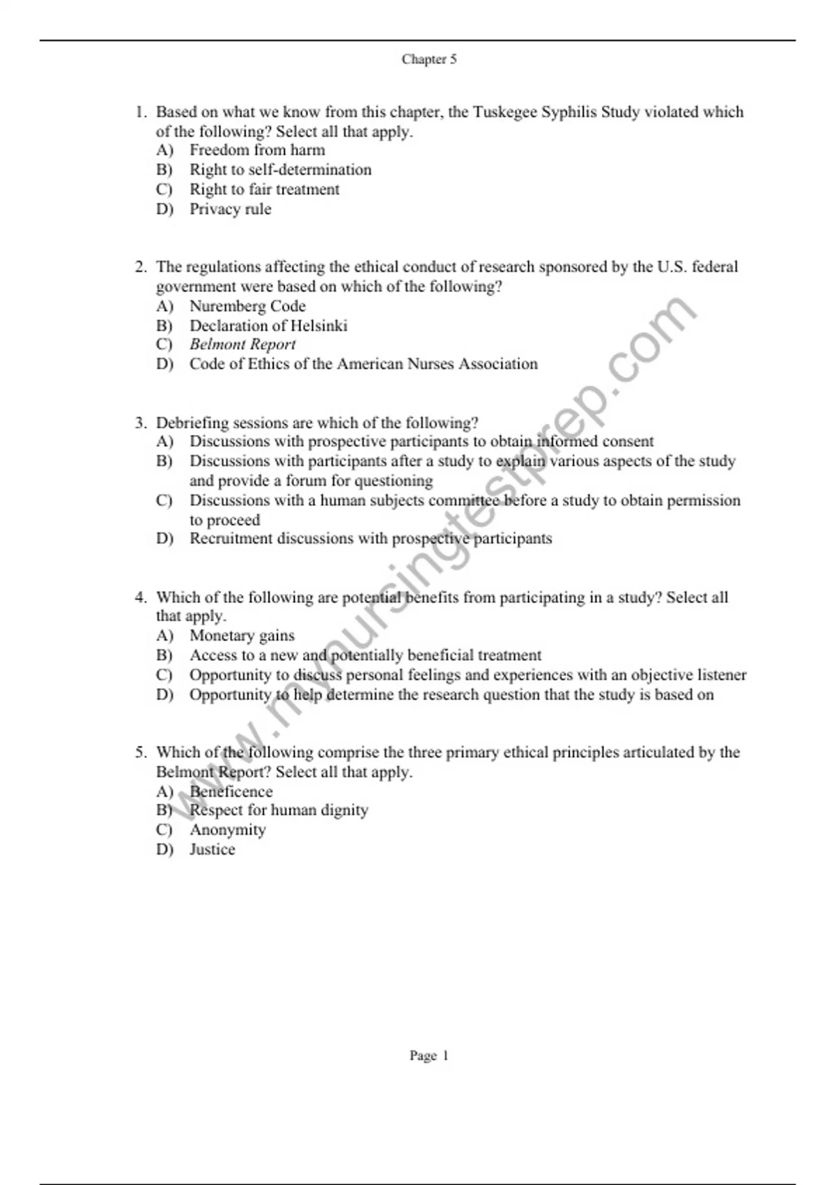 1. Based on what we know from this chapter, the Tuskegee Syphilis Study violated which