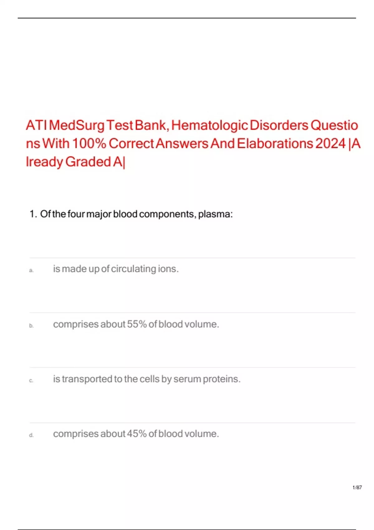 ATI MedSurg Test Bank, Hematologic Disorders Questio