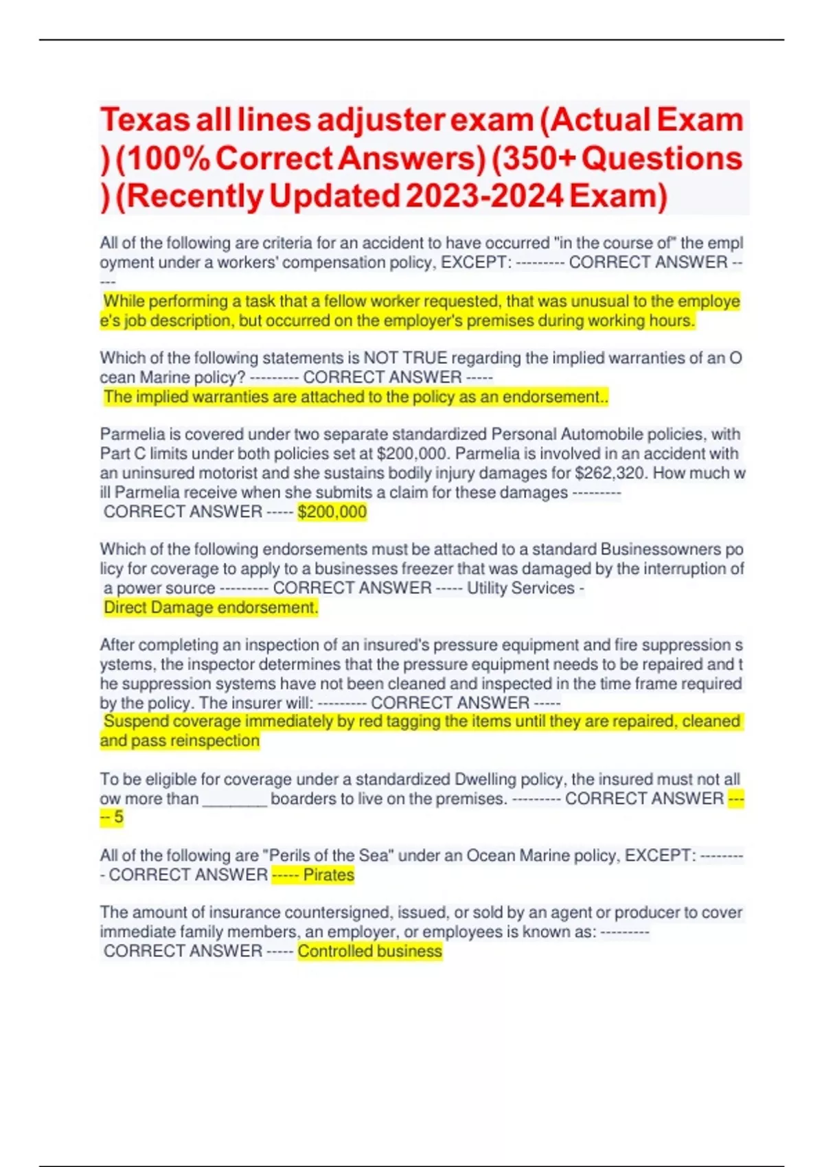 Texas all lines adjuster exam Questions and Answers Explained (Latest ) RATED A+.pdf