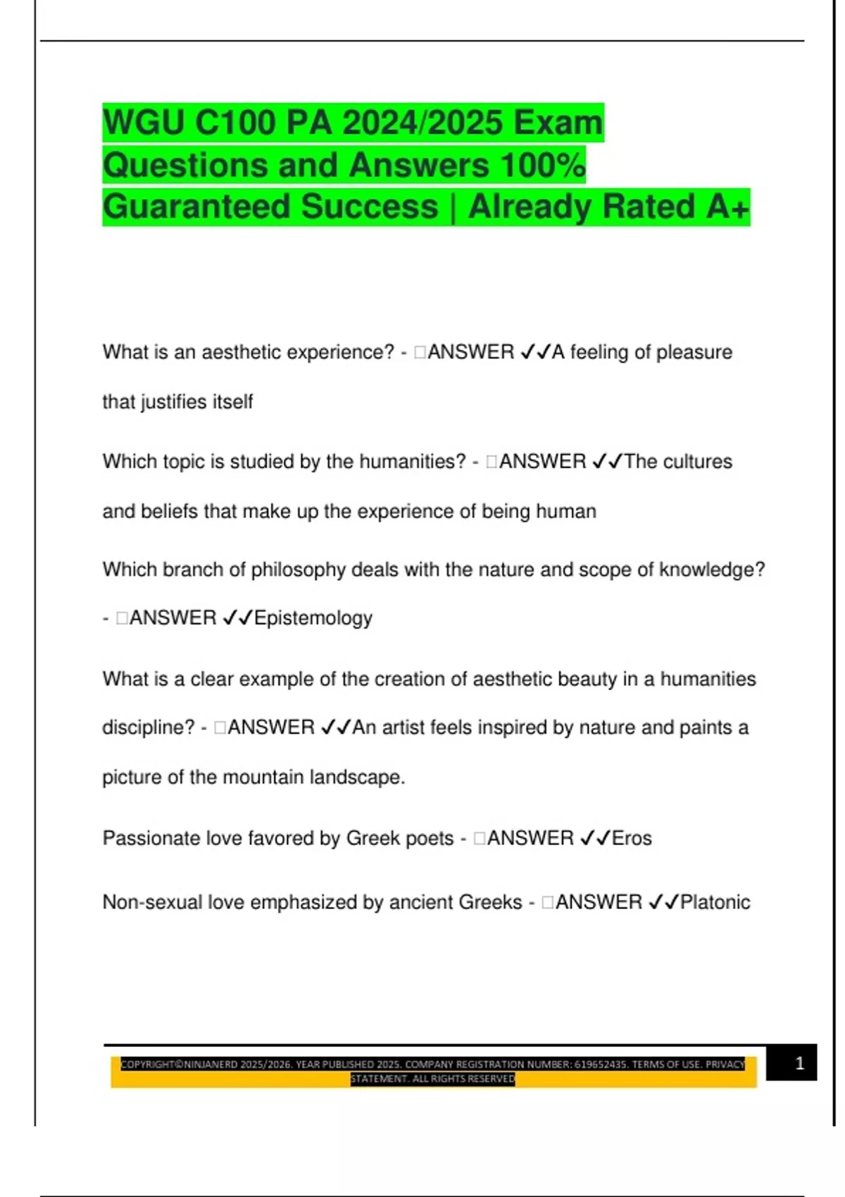 WGU C100 PA 2024/2025 Exam