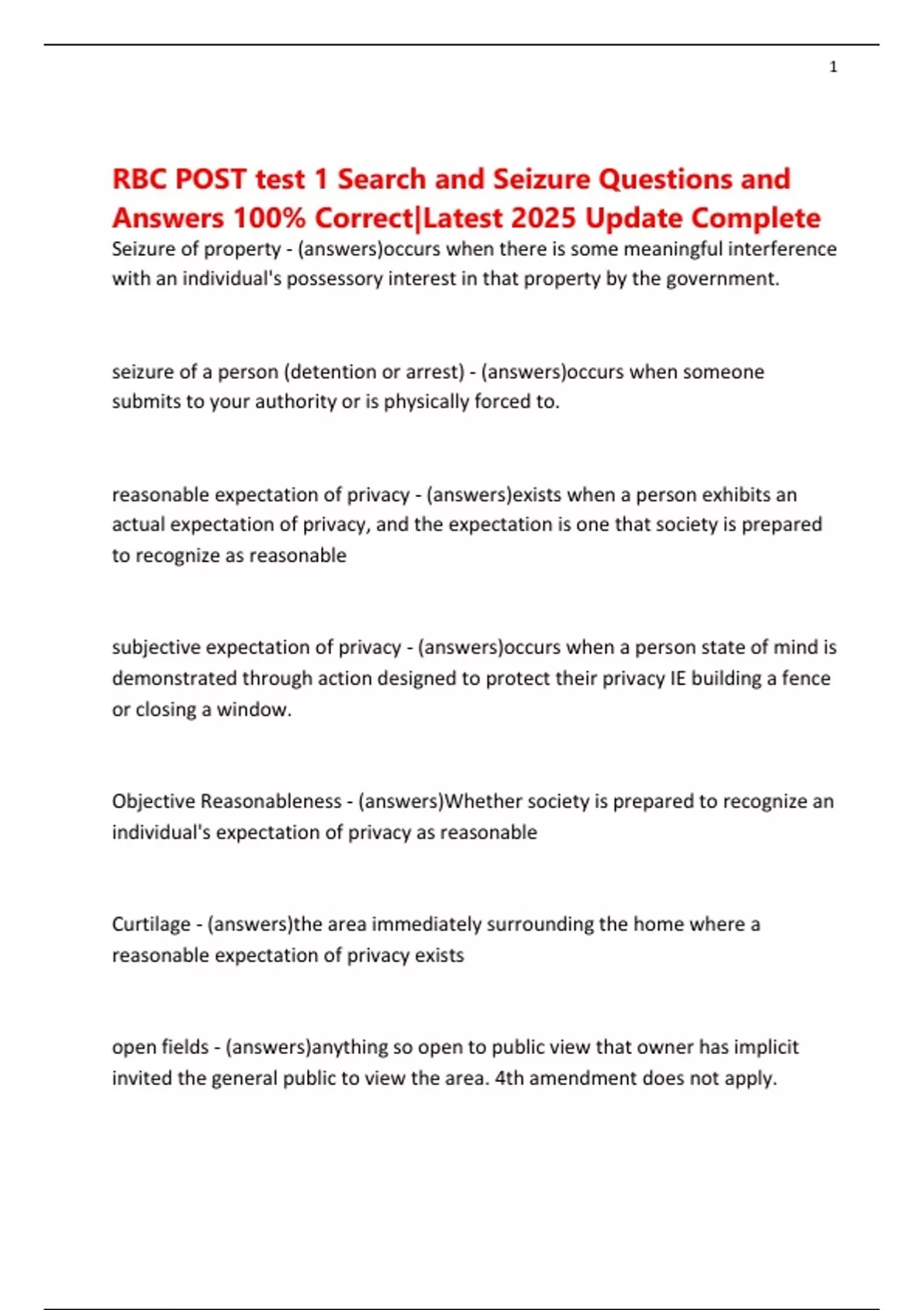 Objective Reasonableness - (answers)Whether society is prepared to recognize an