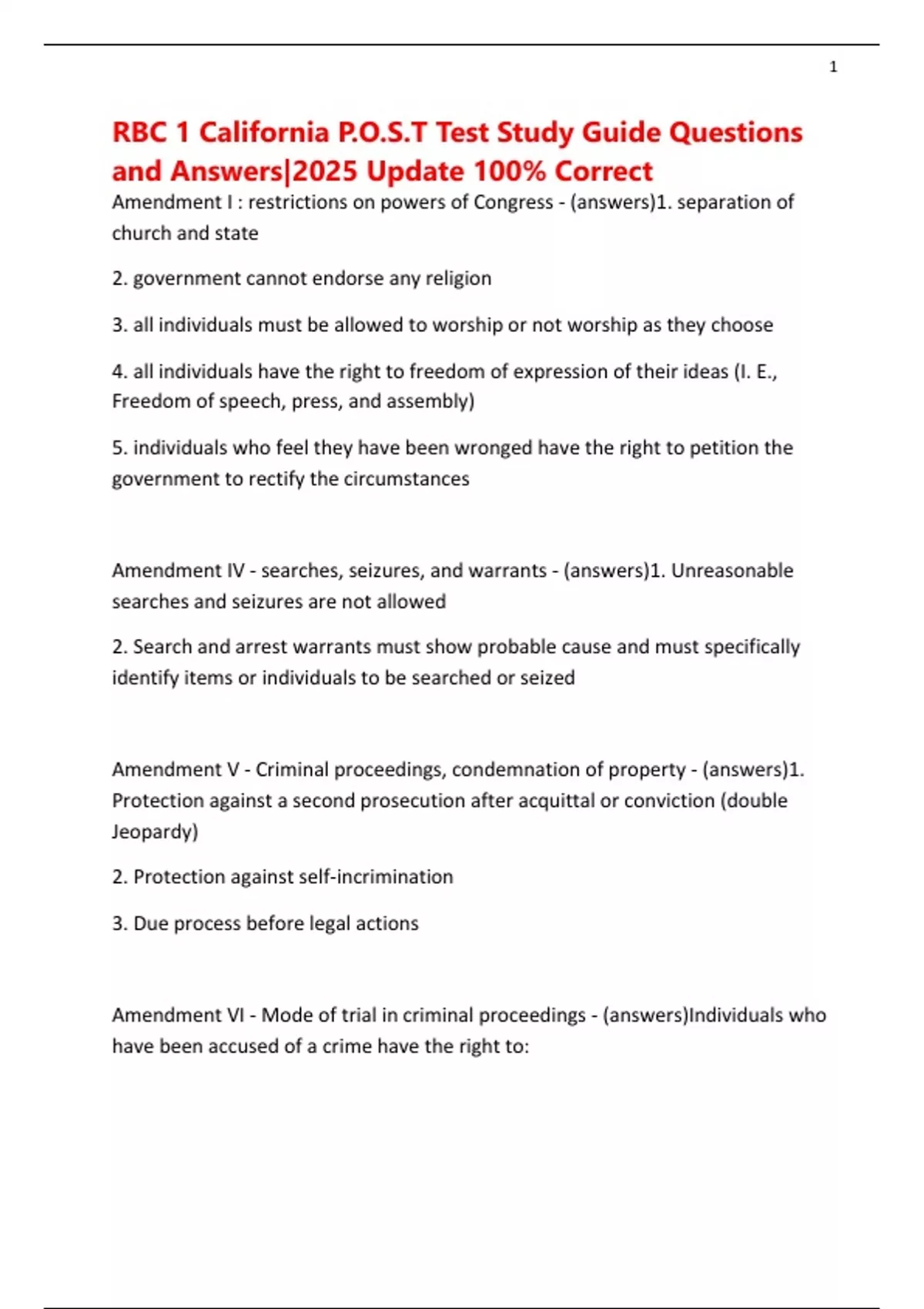 RBC 1 California P.O.S.T Test Study Guide Questions