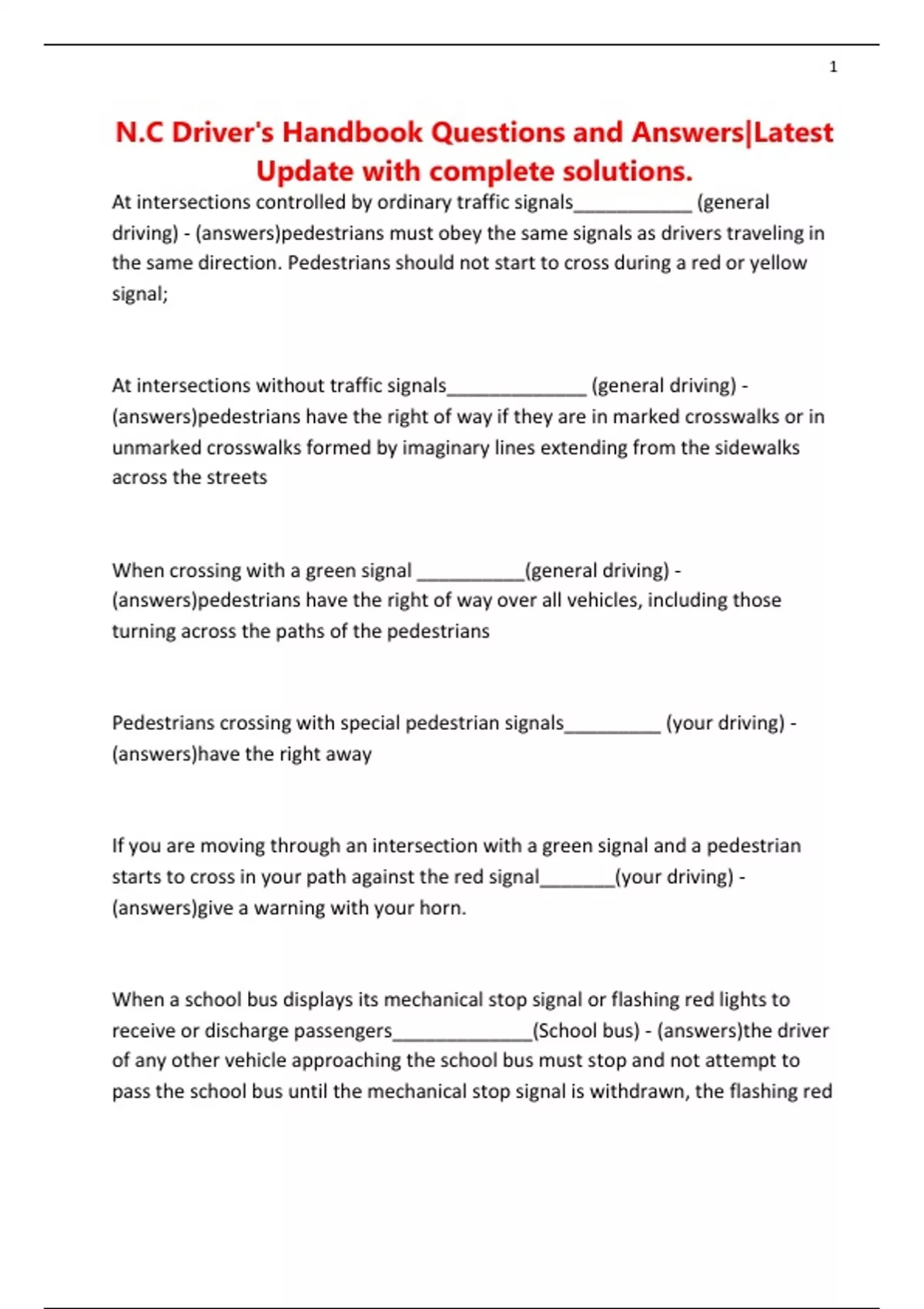 N.C Driver's Handbook Questions and Answers|Latest