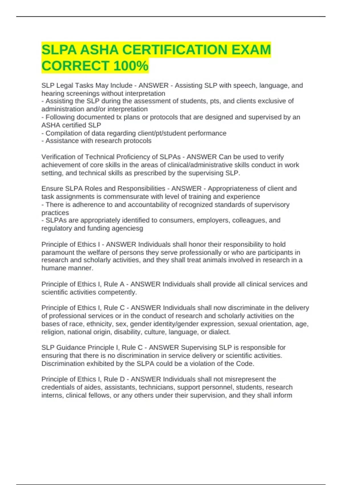 SLPA ASHA CERTIFICATION EXAM CORRECT 100%