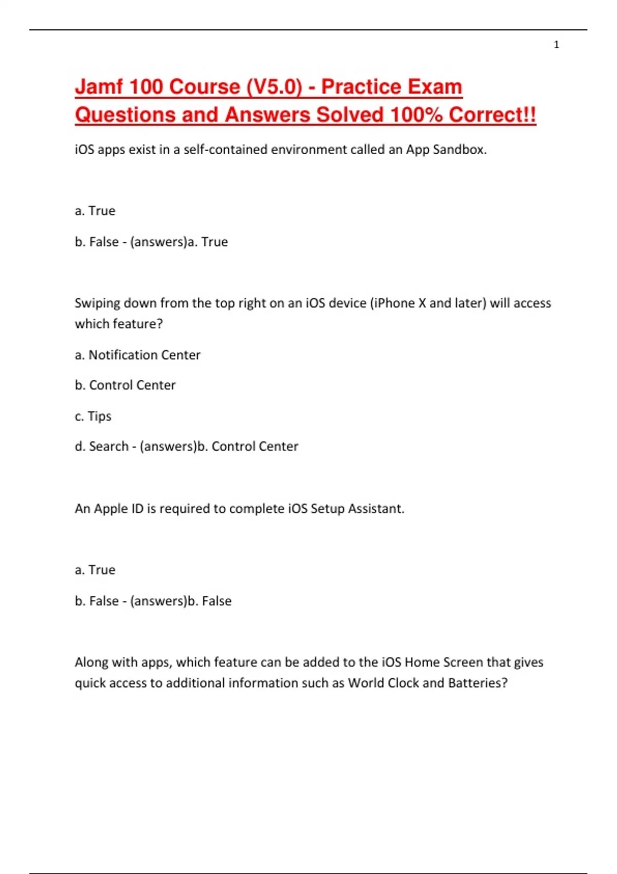 Jamf 100 Course (V5.0) - Practice Exam Questions and Answers Solved 100% Correct!!