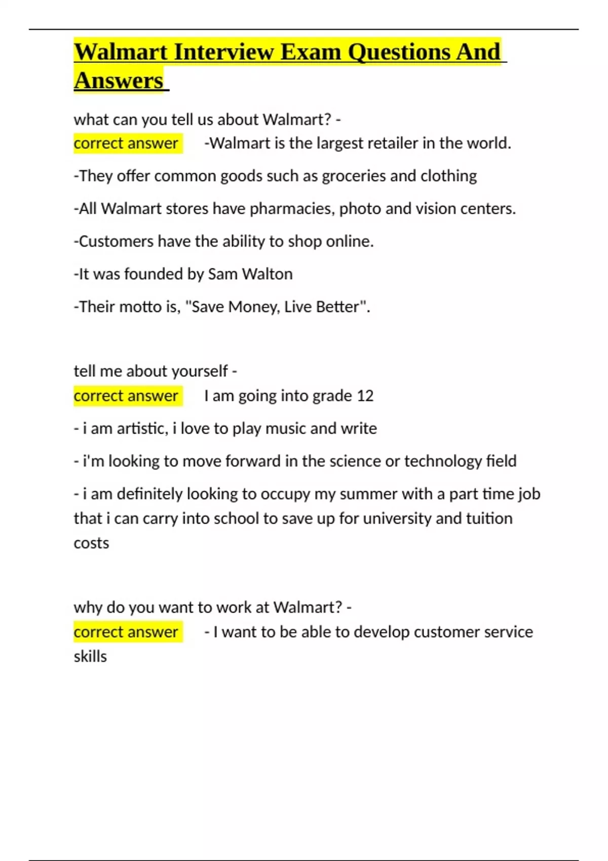 , Walmart Interview Exam Questions And