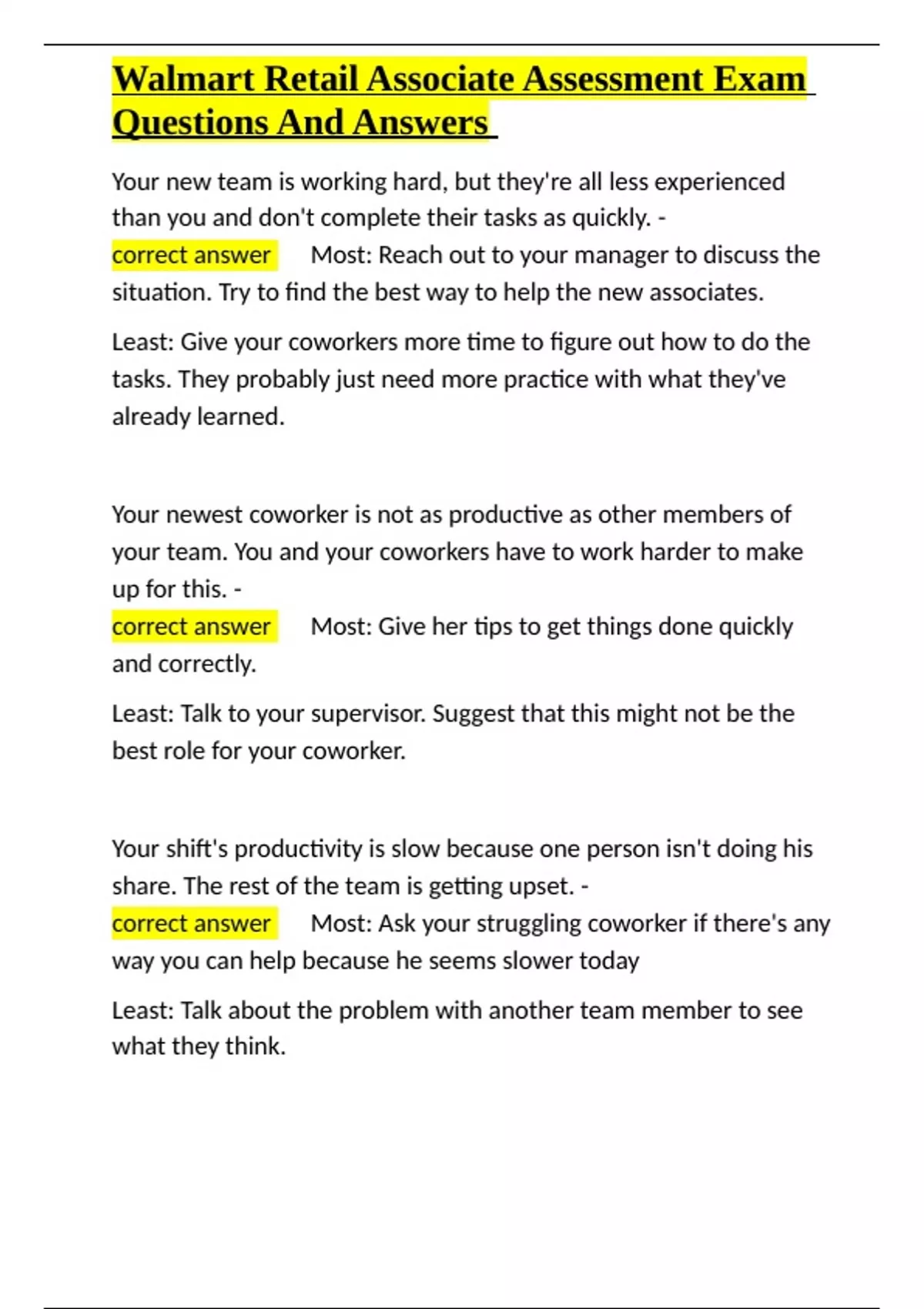 Walmart Retail Associate Assessment Exam Questions And Answers.docx