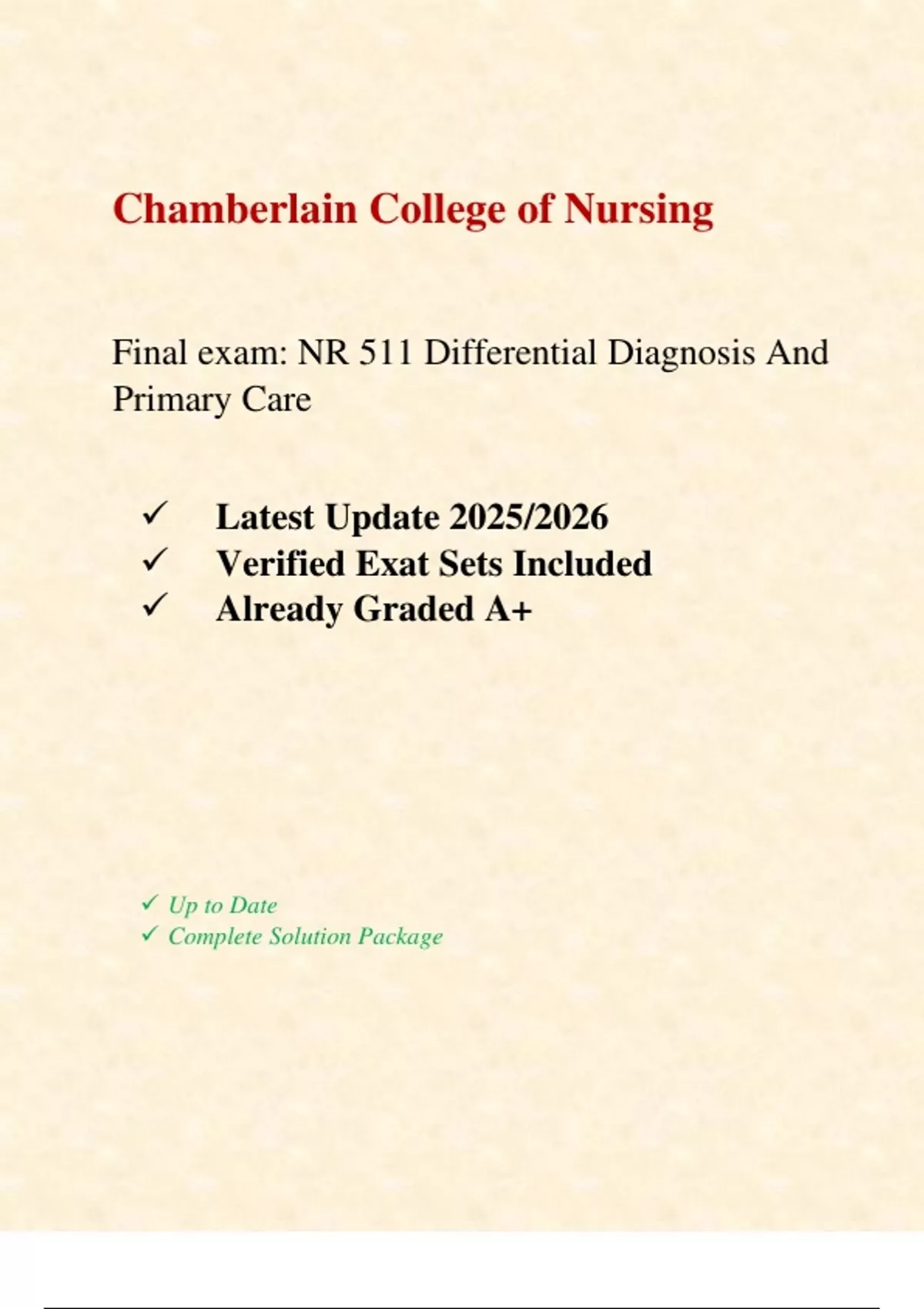 Final exam: NR 511 Differential Diagnosis And